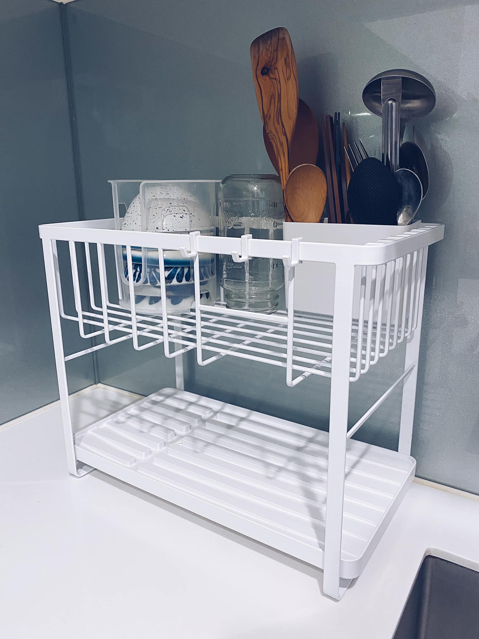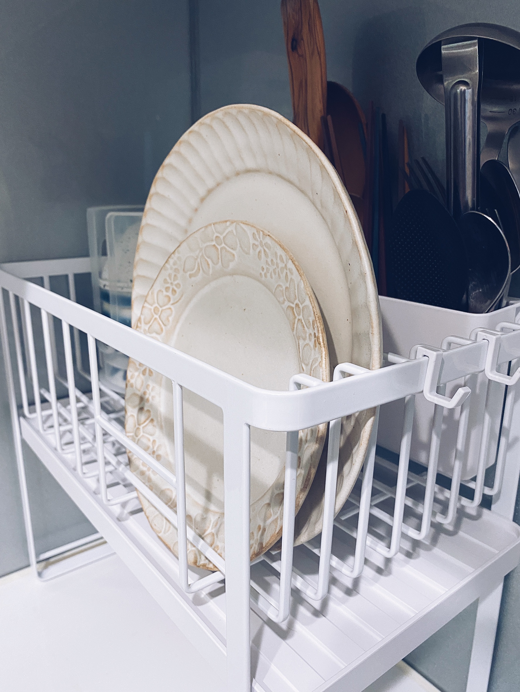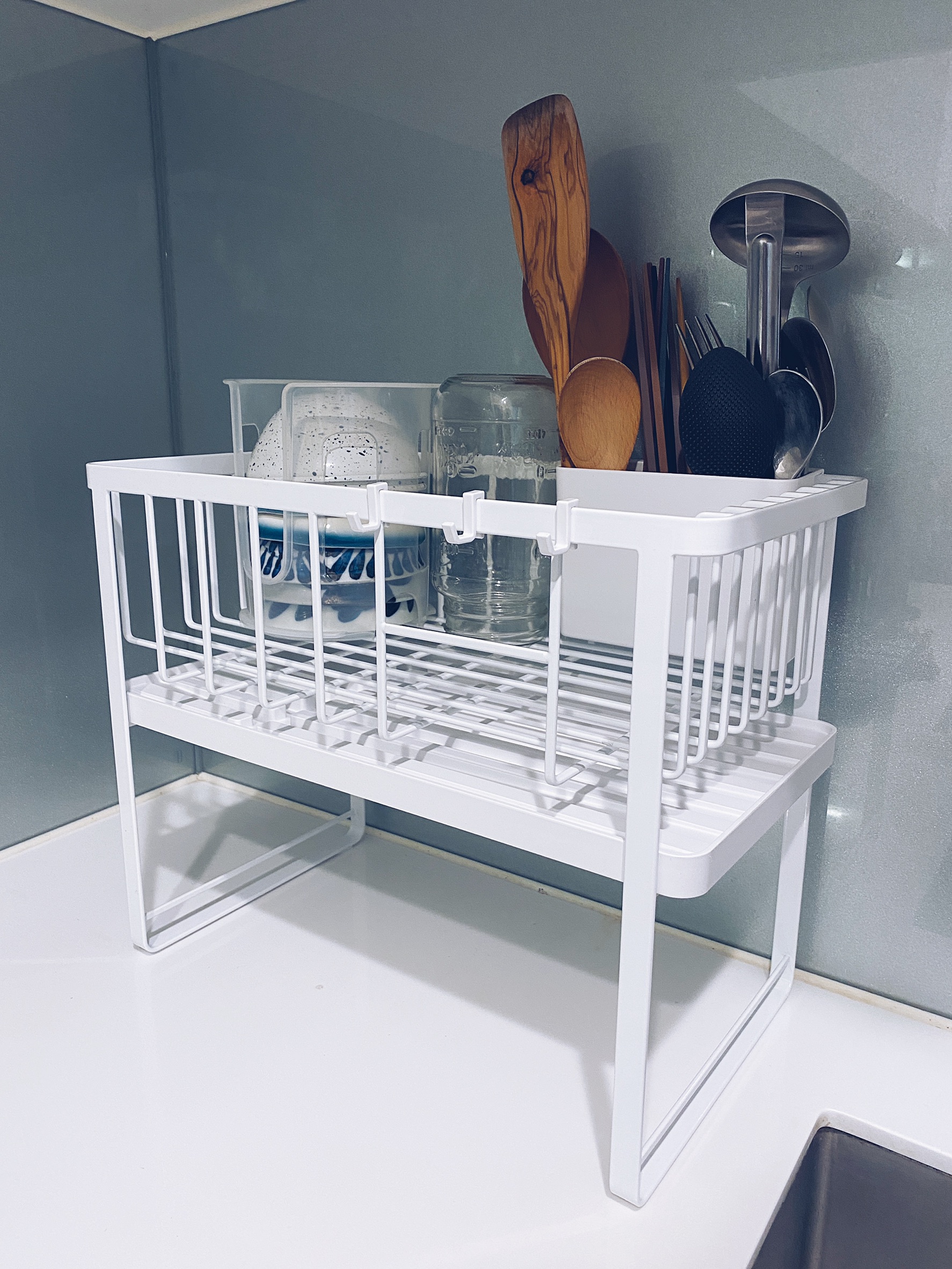 設計良好的瀝水架,碗、盤、杯、壺都能妥善安置,