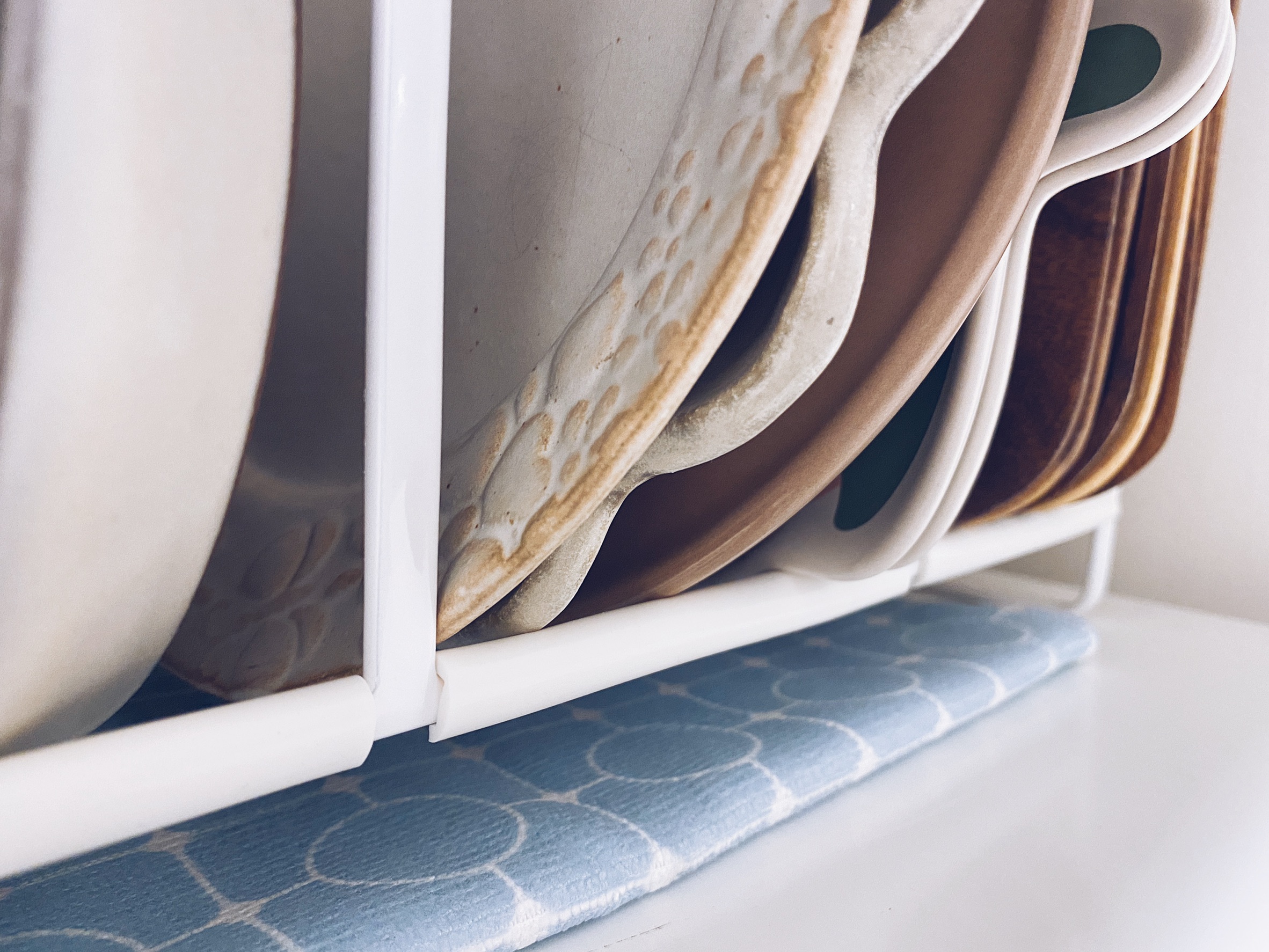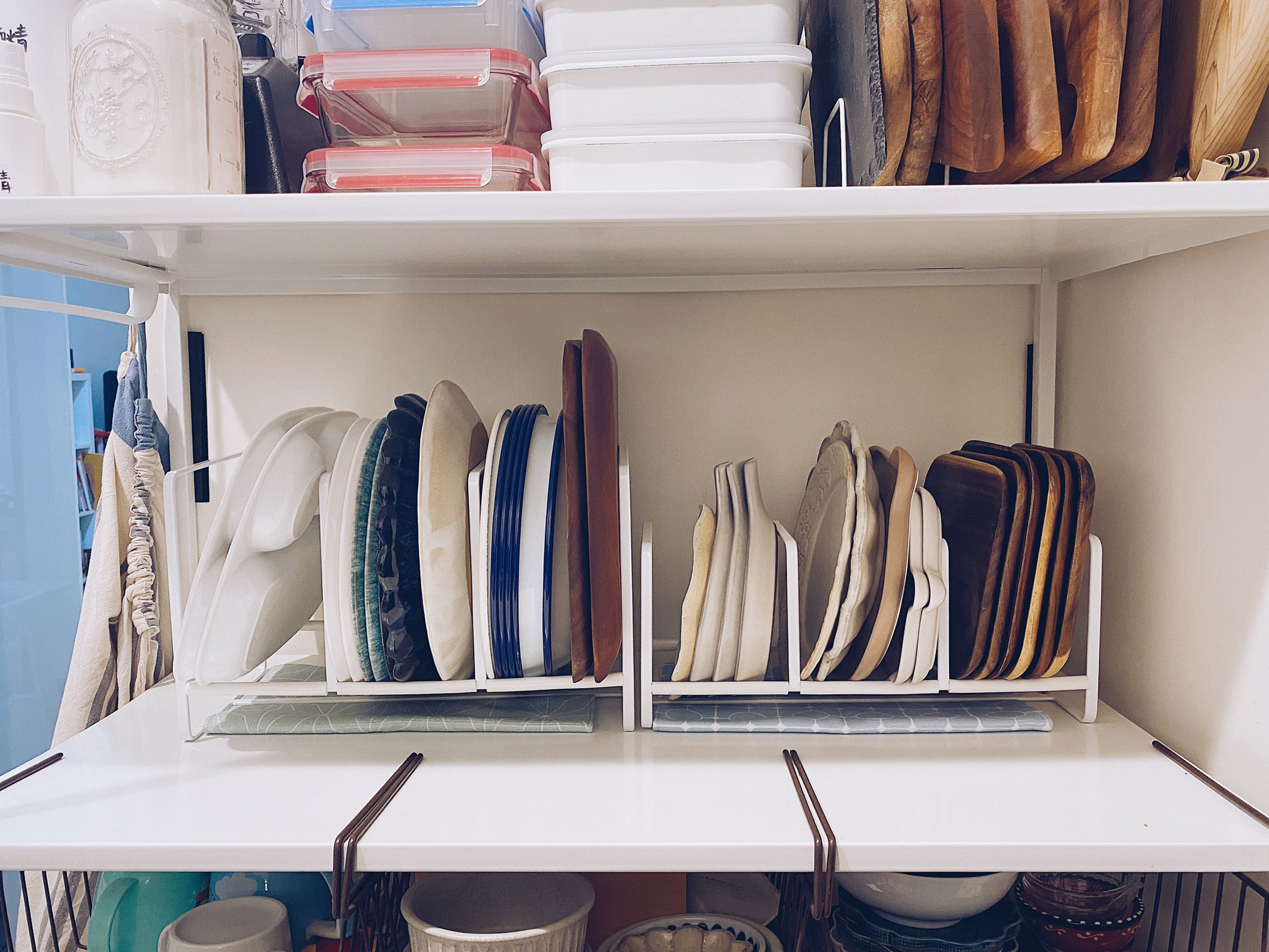 盤子收納部份,入手了兩個尺寸的三格框型盤架,