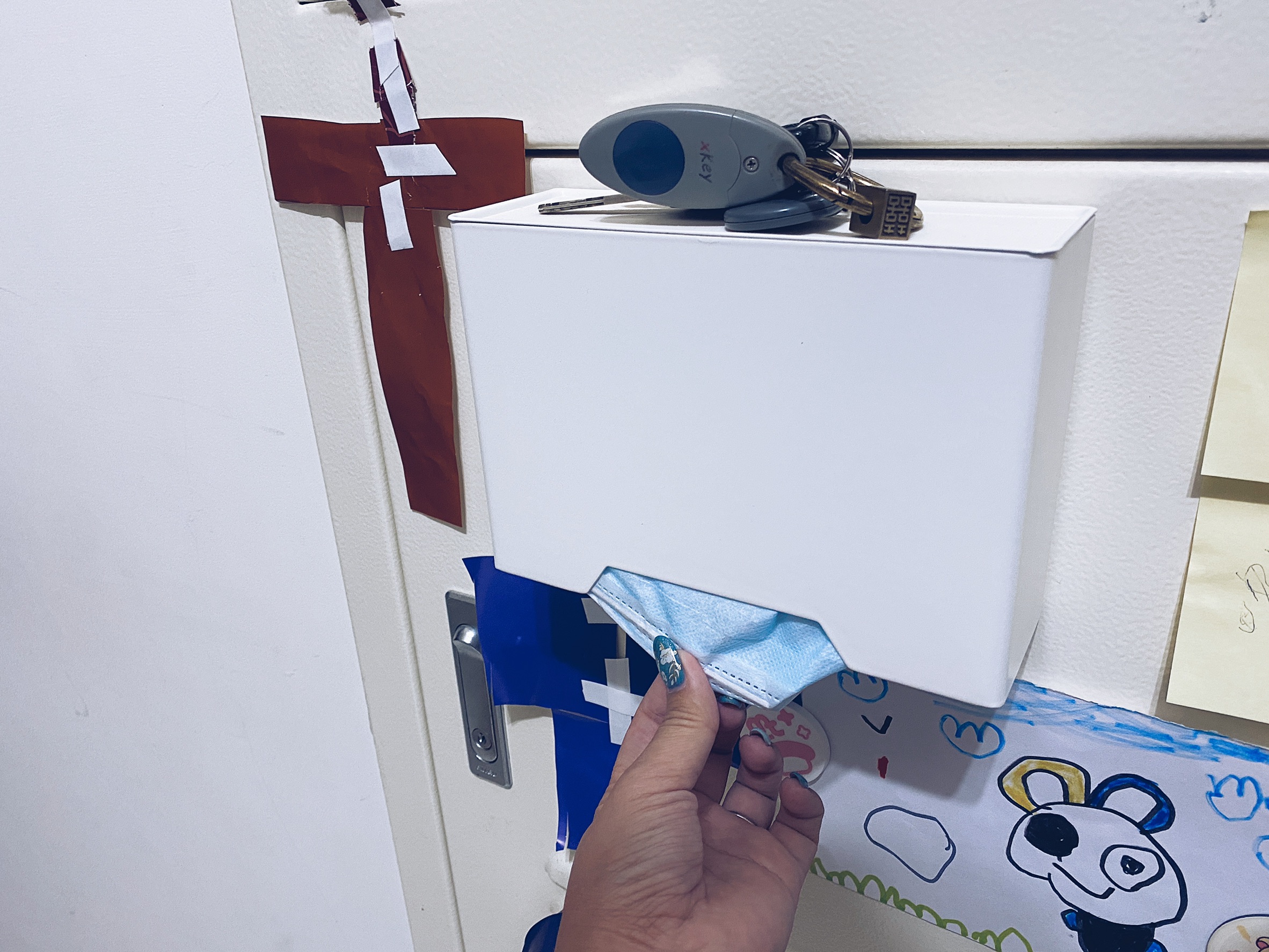 延伸到家庭生活空間來說,將口罩收納盒安排在每天出入家門的動線上,