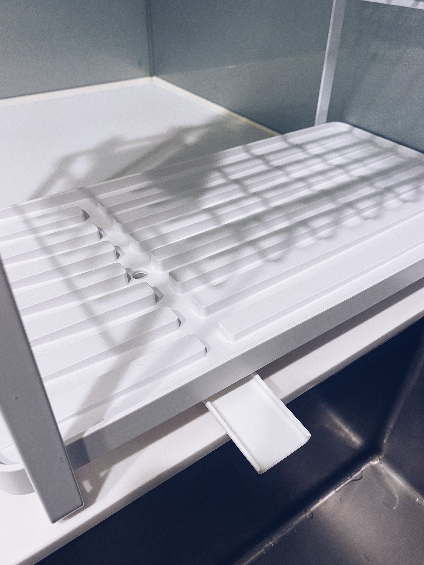 瀝水盤上還有排水設計,可以集中落水至廚房水槽,